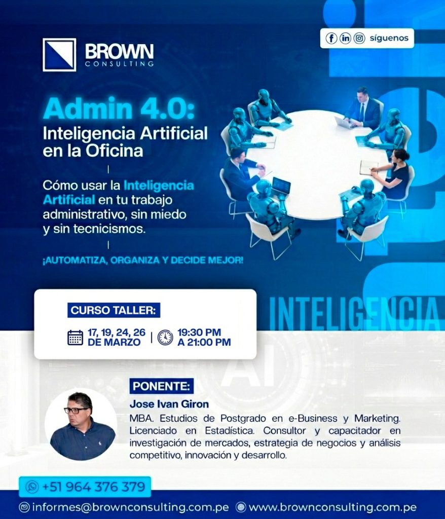 El curso brinda herramientas prácticas para ingresar de una manera sencilla al mundo de la Inteligencia Artificial. La Administración 4.0 implica automatizar tareas repetitivas, organizar y tomar mejores decisiones utilizando las herramientas que la inteligencia artificial ofrece, con el consiguiente ahorro de tiempo, reducción de errores y disminución del estrés.